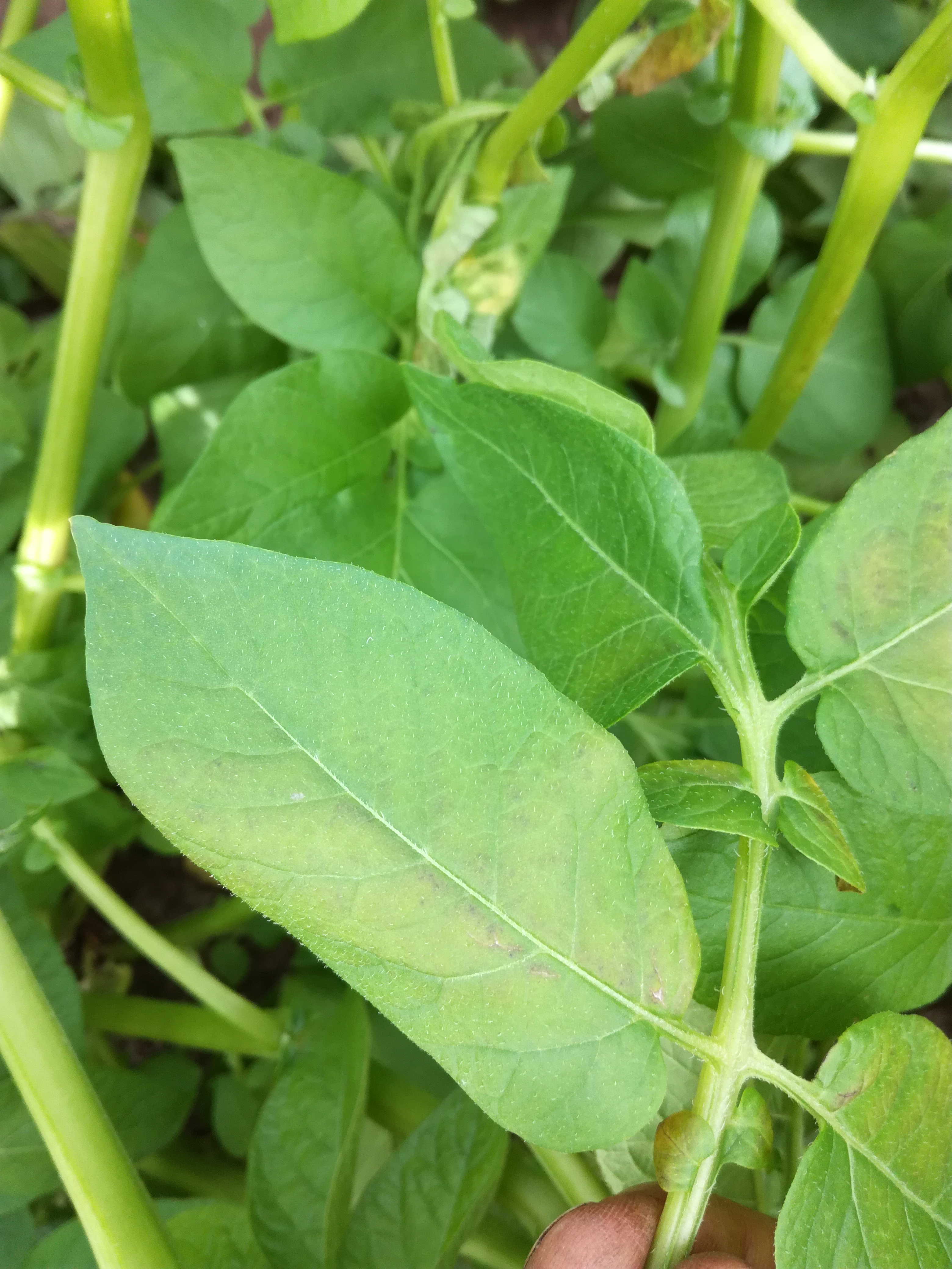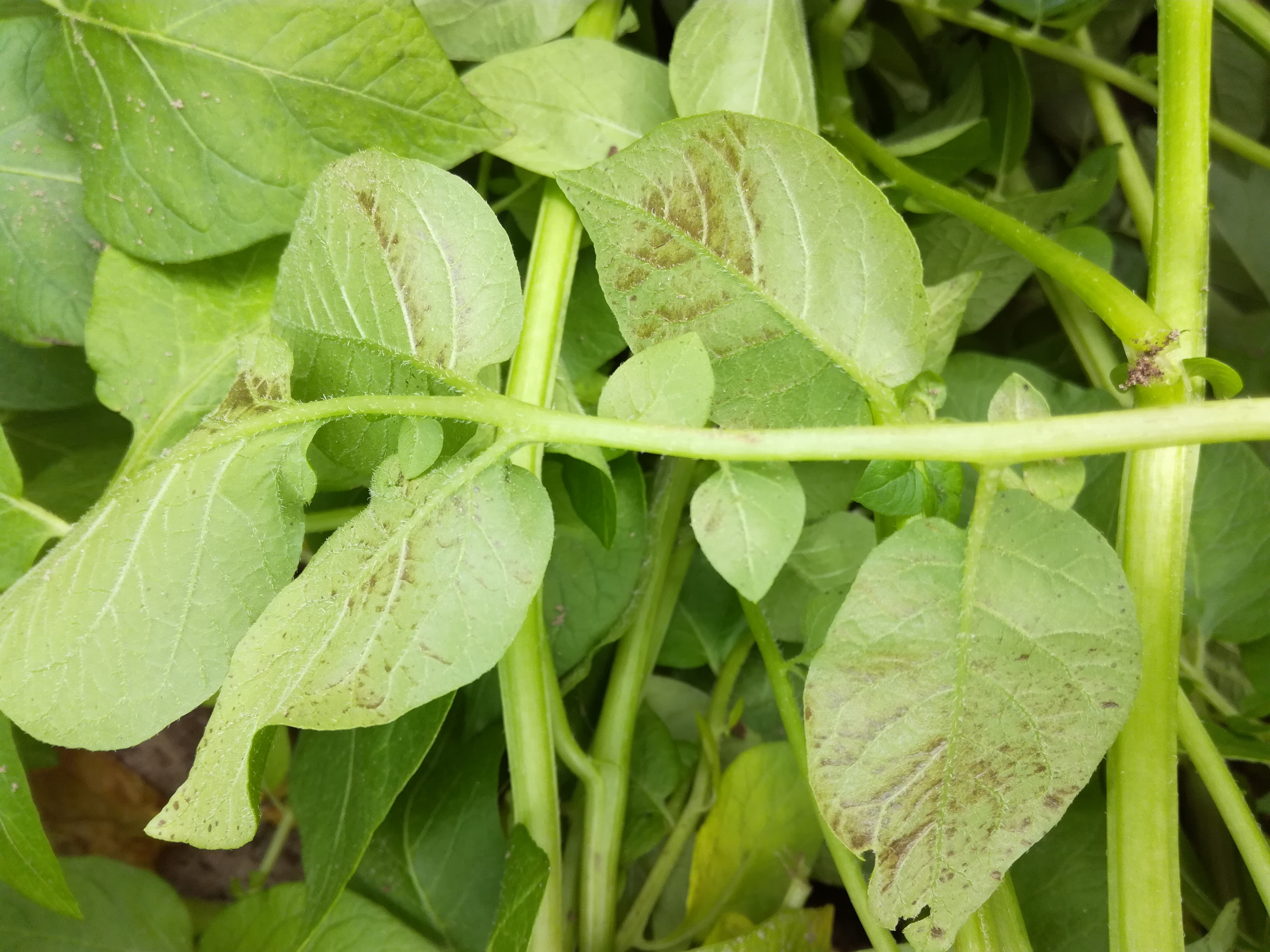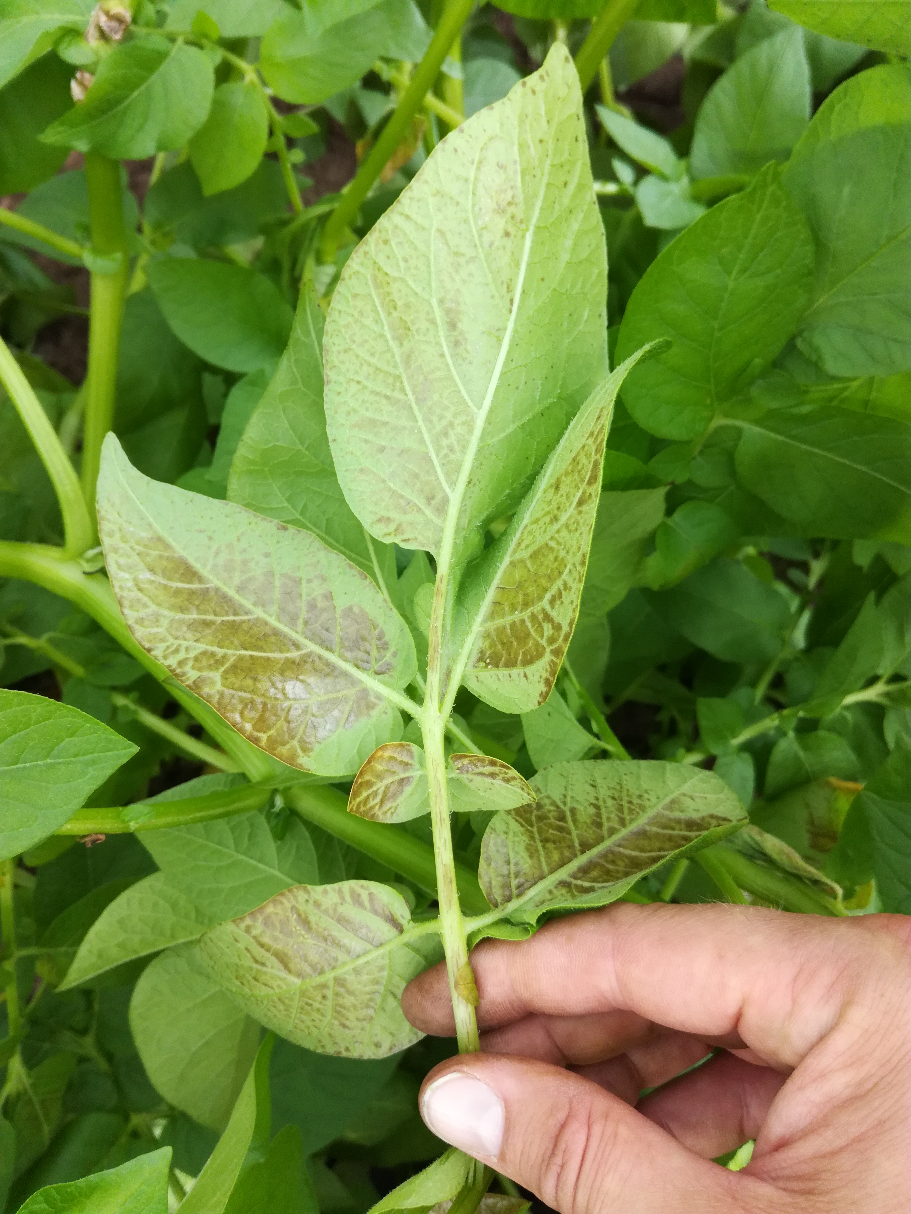 Sopivissa valo- ja kosteusolosuhteissa lehtien alapinnat saattavat ruskettua polttovioituksen vaikutuksesta. Tämä tapahtuu täysin kehittyneille lehdille, ja lajikkeiden välillä lienee on eroja siinä, kuinka herkästi tummentumista tapahtuu. Helpoimmin polttovioituksen voi tunnistaa silloin, kun yksittäisen lehdykän toinen puoli keskiruodista on kääntynyt ylöspäin ja altistunut auringonvalolle. Maata kohti pysynyt puoli lehdykästä ei ole ruskettunut. Polttovioitus voi hävitä ajan mittaan ja sillä ei pitäisi olla vaikutusta yhteyttämisen tehokkuuteen eikä näin ollen satoon.