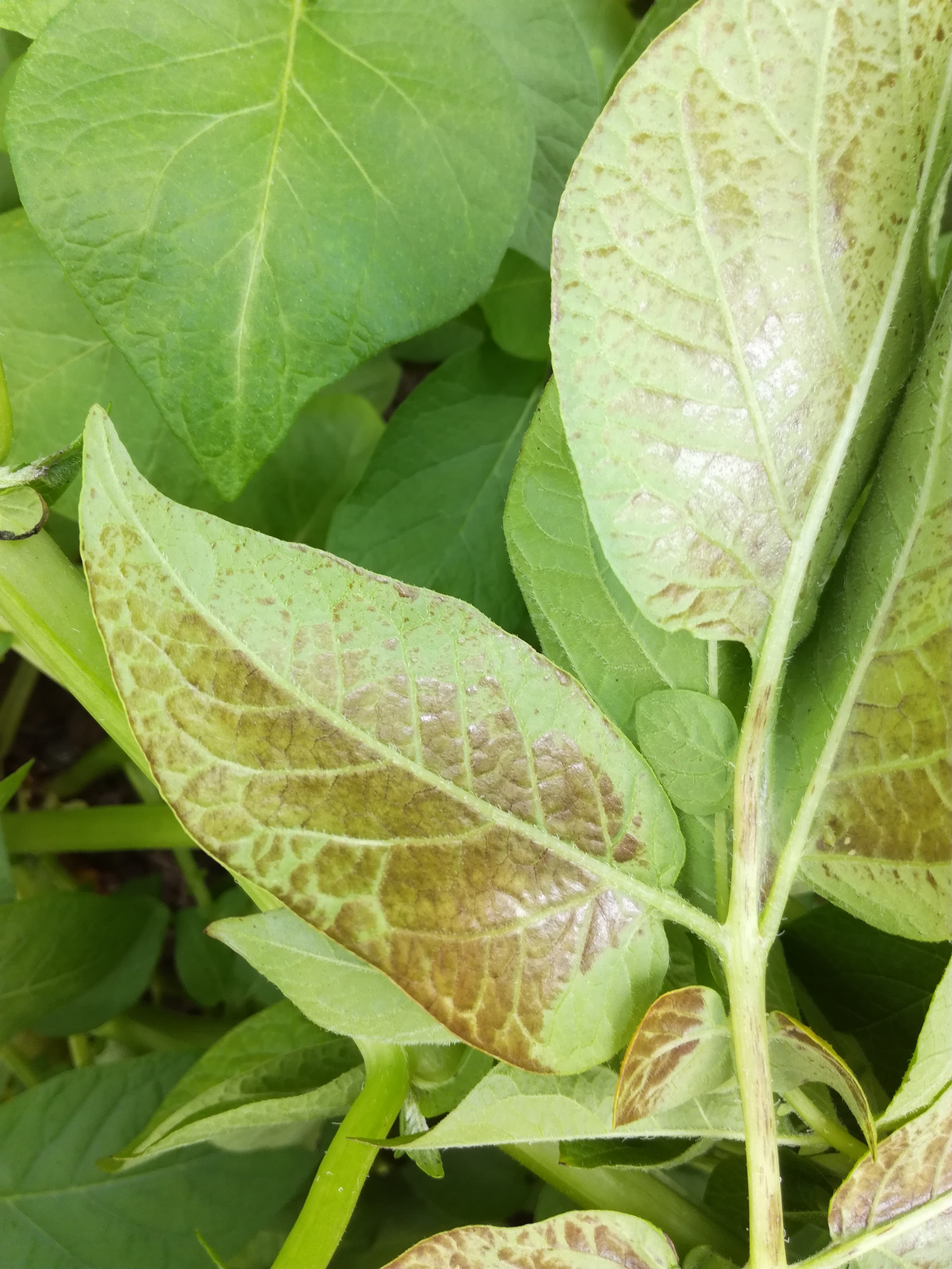 Lehti jossa tummennusvioitusta niissä osissa, jotka ovat olleet eniten alttiina suoralle auringonpaisteelle. Juhani Rahko